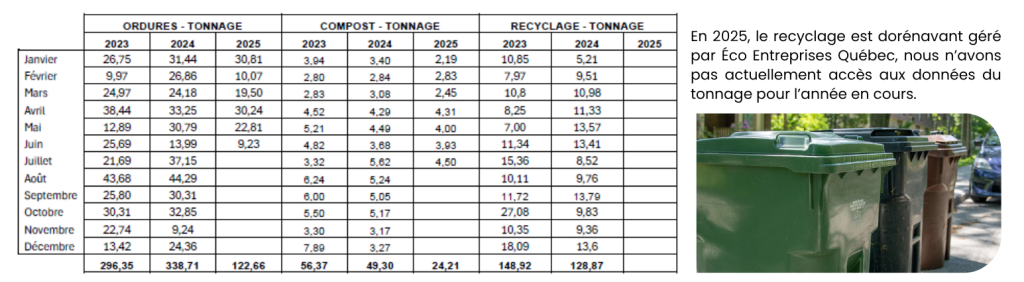 Bacs disponibles au bureau de poste et à l’école. Merci de collaborer pour un environnement sainement bénéfique.