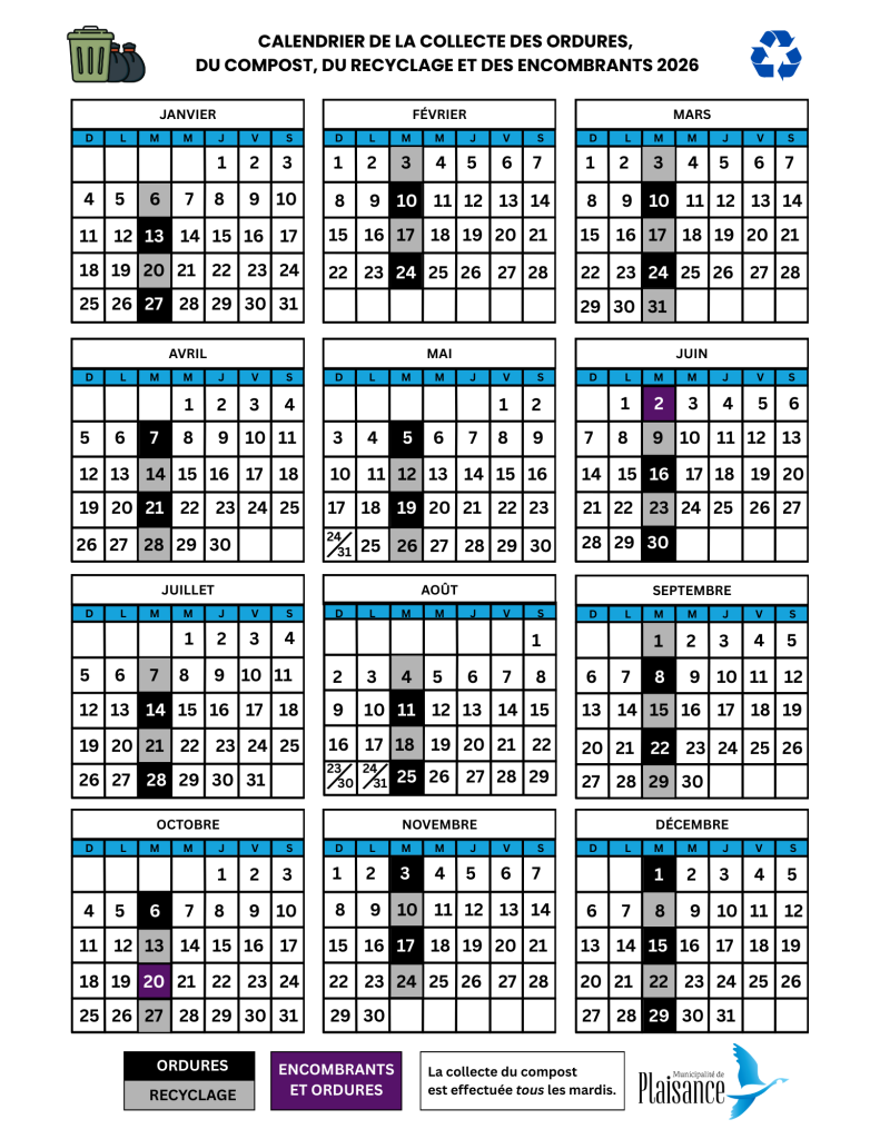 Pour télécharger le calendrier des collectes d’ordures et de la récupération, cliquez ici.